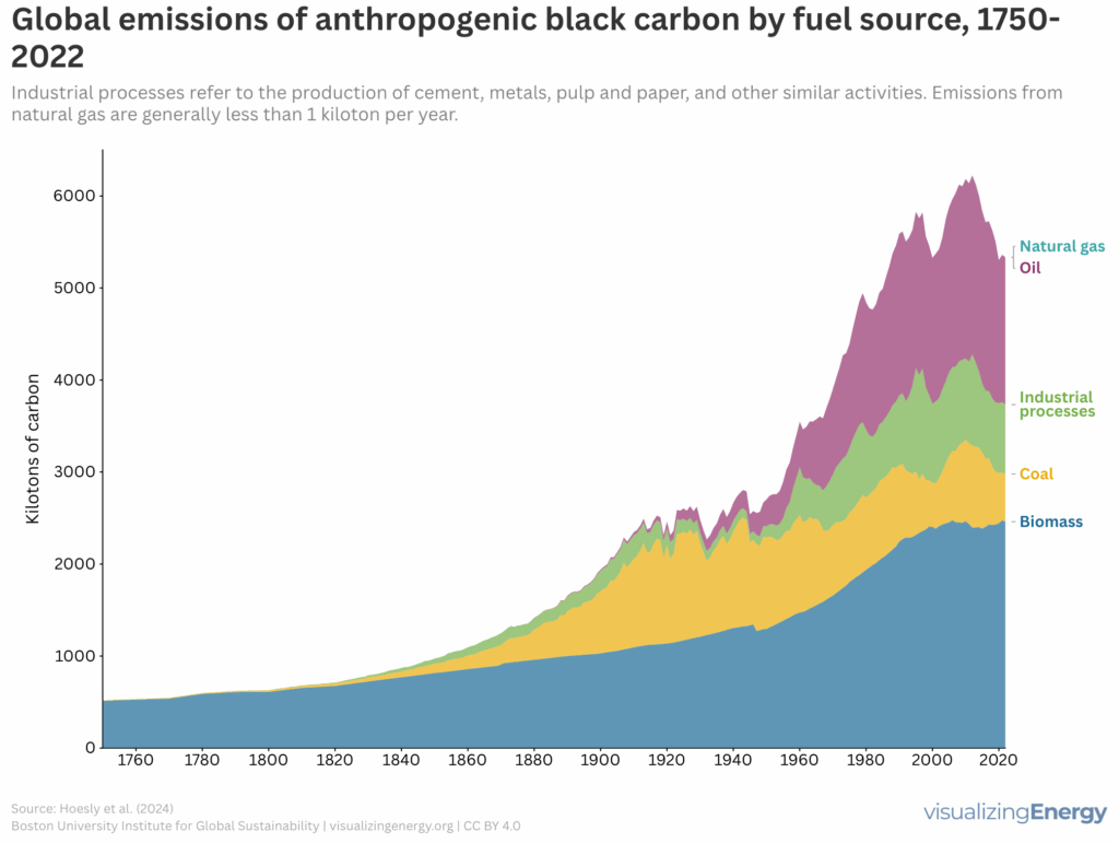 Anthropogenic black carbon, or soot, arises from incomplete combustion of organic materials, significantly impacting climate change and public health. It causes global warming, degrades air quality, and leads to various health issues. Major contributors include residential fuel usage and transportation emissions. Reducing black carbon relies on cleaner fuel access and improved combustion technologies.