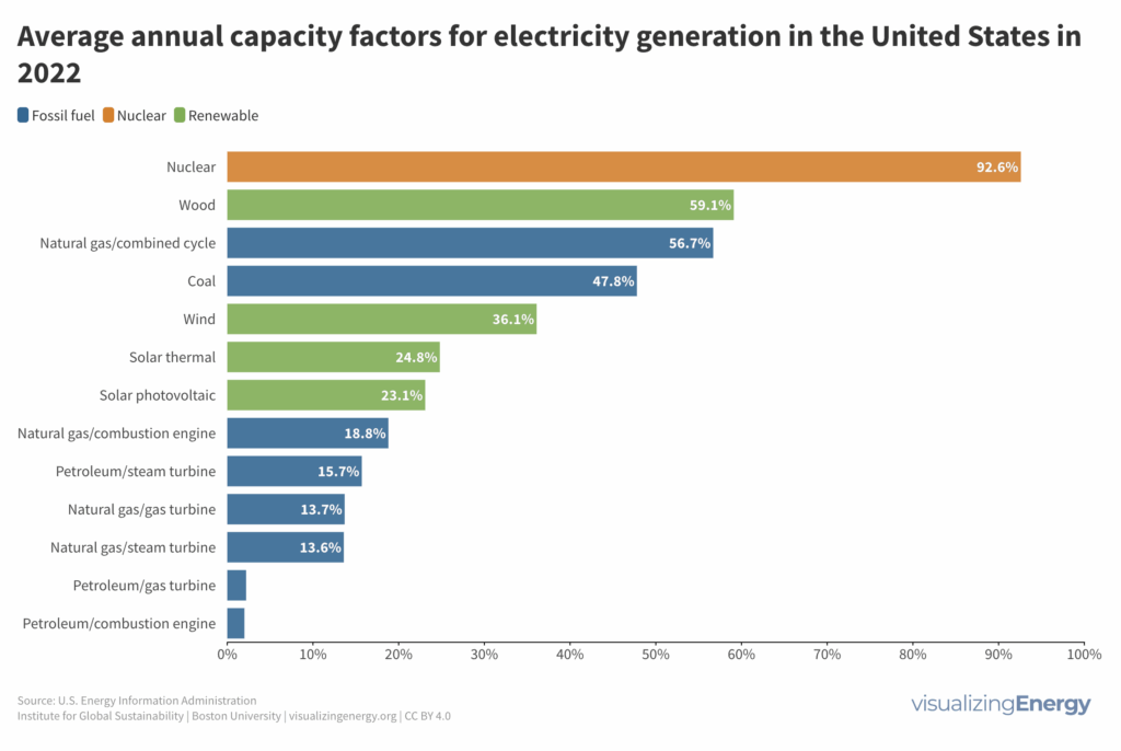 The capacity factor is a crucial measure for electricity generation. It represents the ratio of actual electrical energy production to the maximum possible output over a specific period. Nuclear plants lead with a 90%+ factor, while renewable sources like wind and solar struggle due to intermittency. New challenges arise with climate change impacting demand and production patterns.
