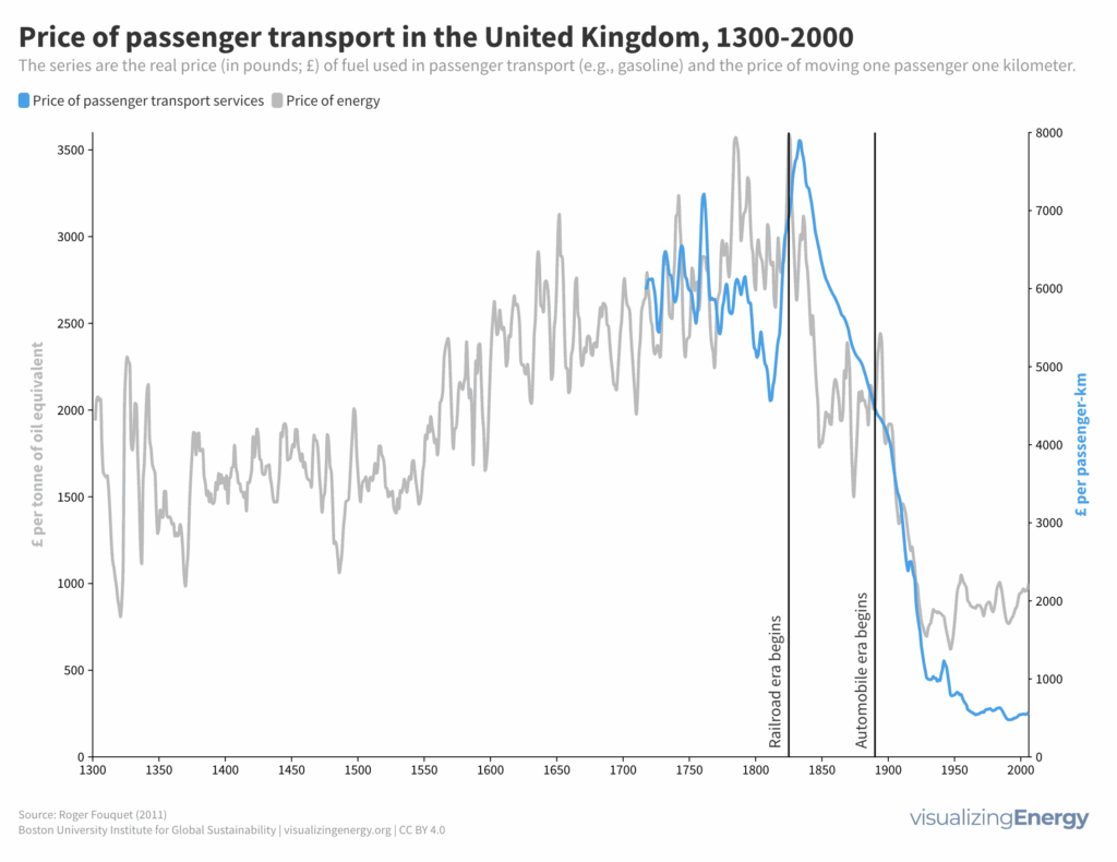 Two centuries of declining prices for personal transportation in the United Kingdom