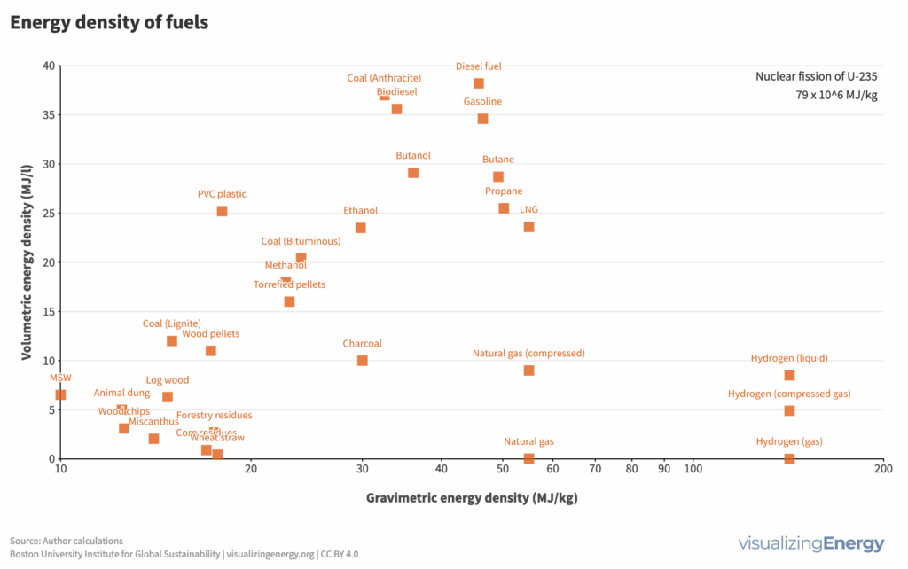 Fuels like wood, diesel, and natural gas have shaped human energy history, driven by technological, economic, and environmental forces. Liquid fuels from oil, with their high mass and volumetric energy density, led to their supremacy in transportation. Shifts in fuel types also influence the devices that convert them into energy services.