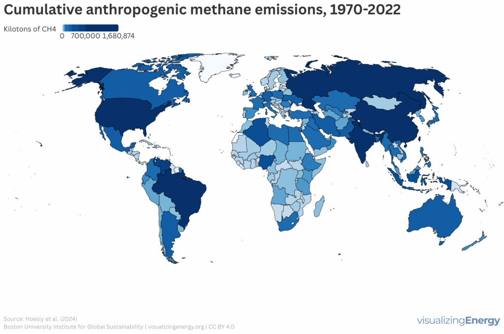 Global anthropogenic methane emissions, 1970-2022