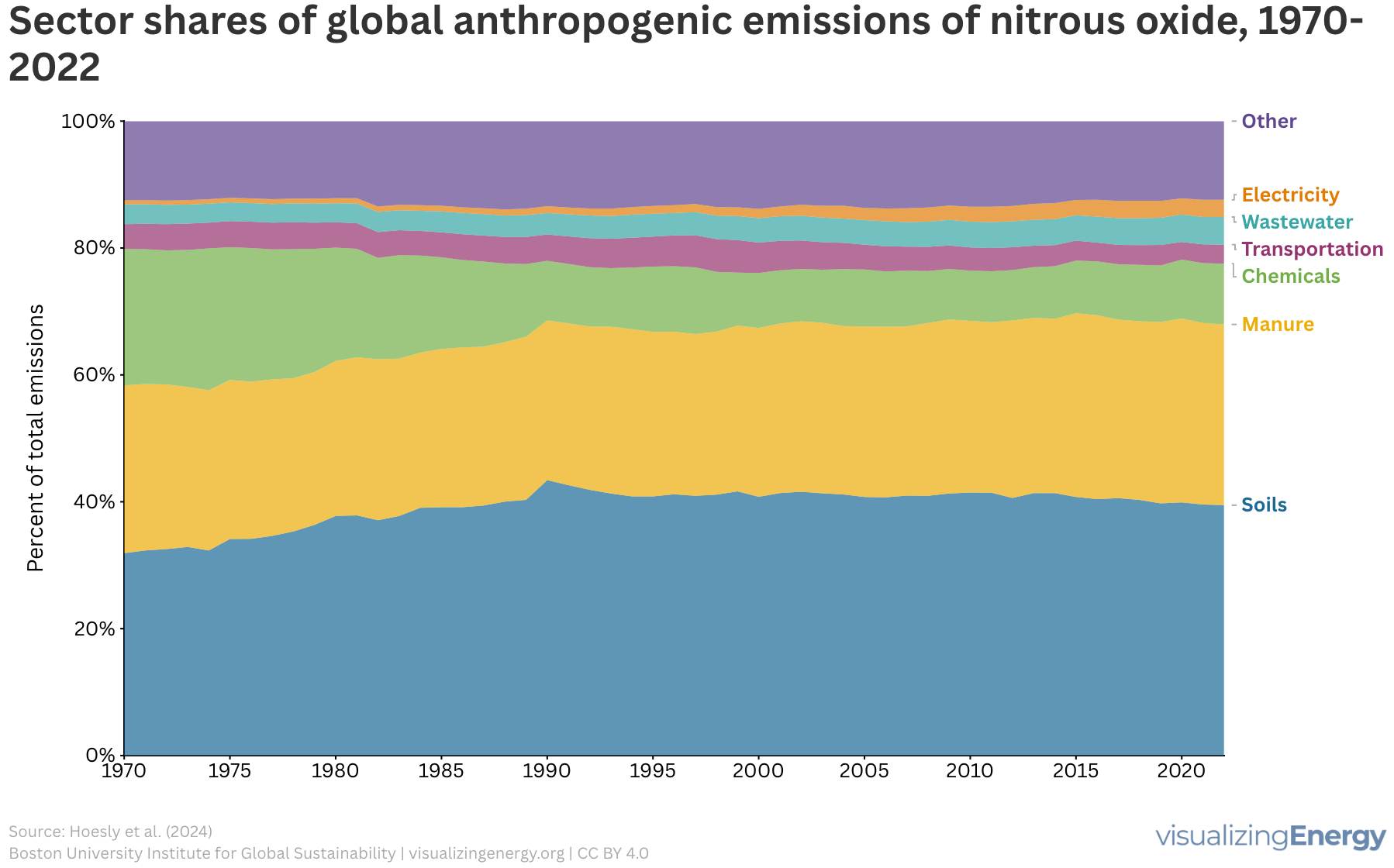 Nitrous oxide (N2O) is a potent greenhouse gas that contributes to climate change and ozone depletion, with human activities significantly increasing its emissions since the 1970s. Key sources include agricultural practices, livestock manure, and industrial emissions. Action is necessary across sectors to mitigate N2O emissions and improve nutrient management strategies.