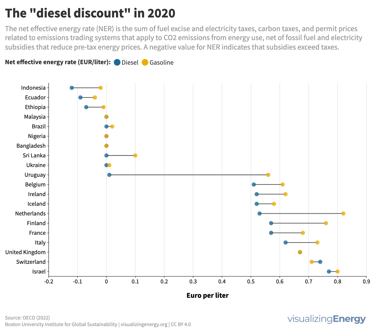 Government policies significantly influence gasoline prices, leading to disparities across countries. Most nations tax gasoline, while some subsidize it, especially oil exporters. Higher income countries typically impose steeper gasoline taxes to harness revenue. There’s a growing call to reduce fossil fuel subsidies to curtail greenhouse gas emissions, advocating for carbon pricing to promote clean technology.