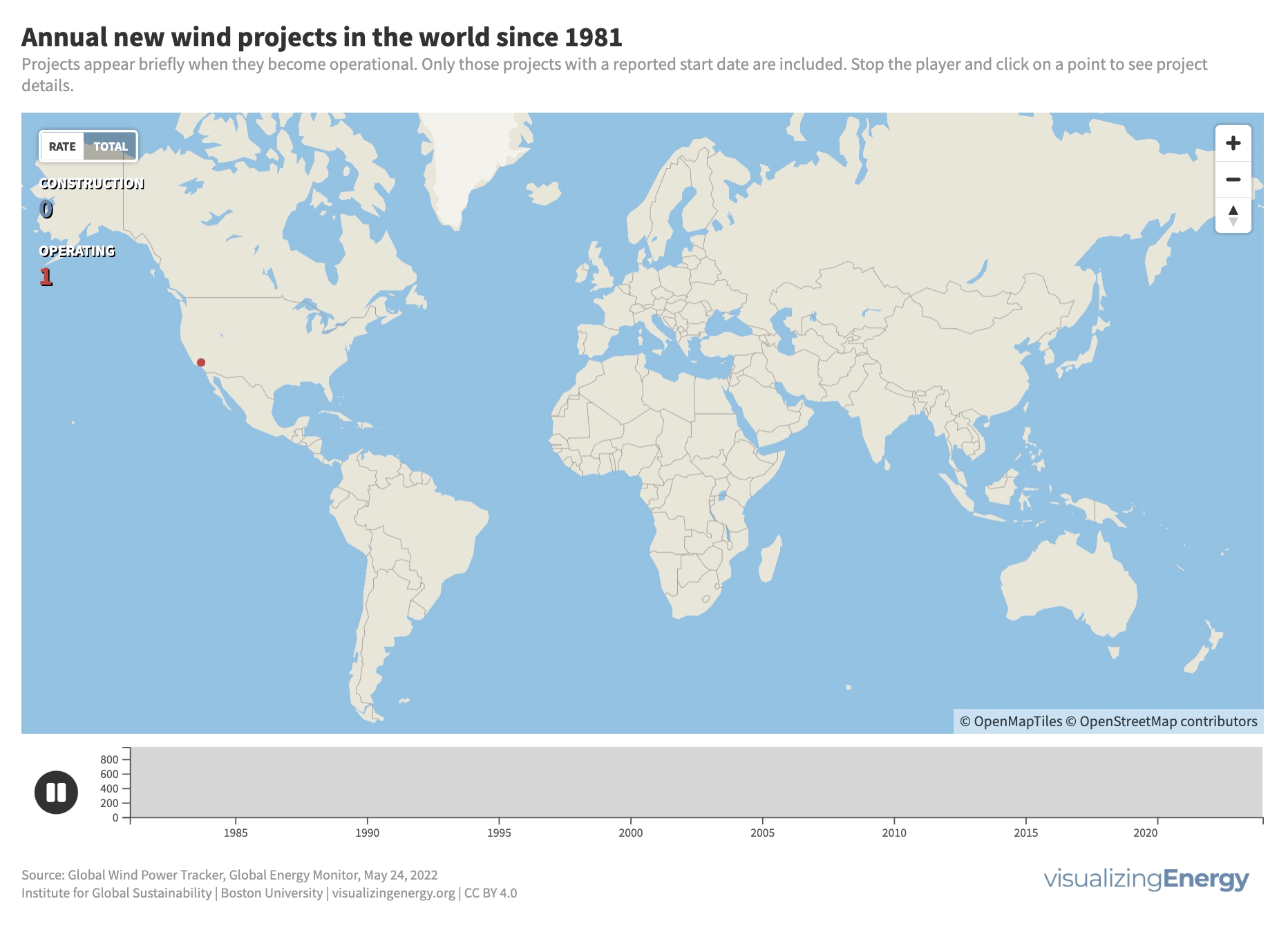 Modern wind energy in the United States began in California in the early 1980s with several wind farms in mountain passes in central and Southern